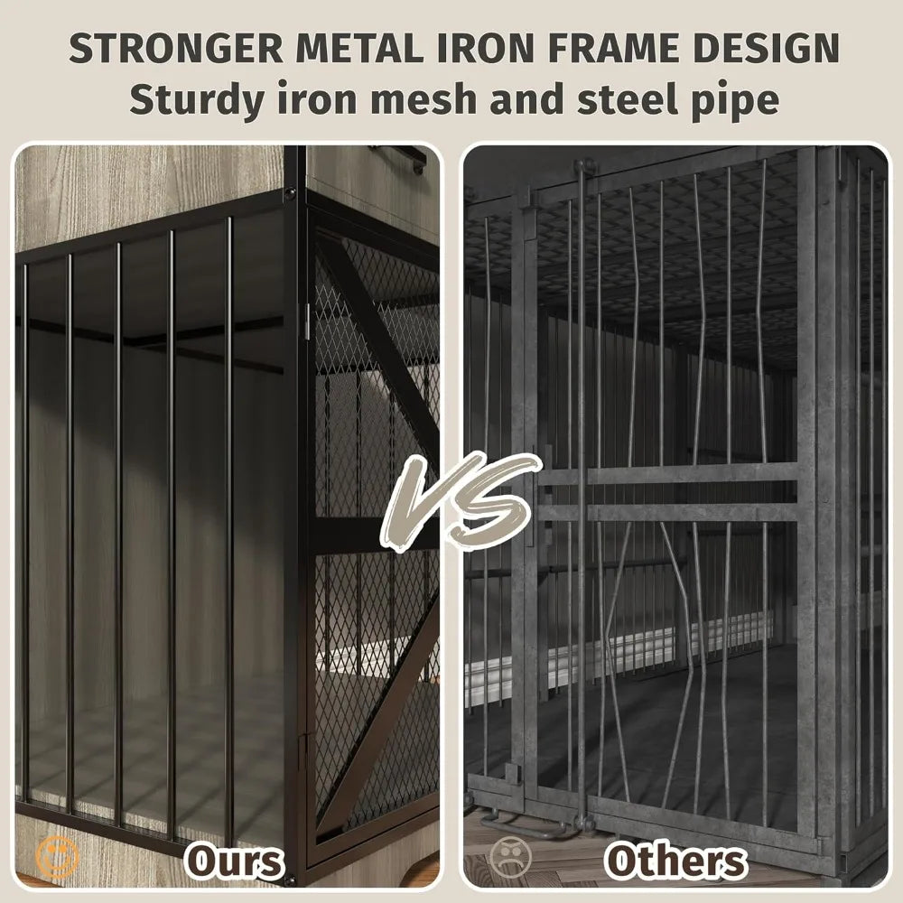 Dog Crate Furniture, Dog Kennel Furniture for Large Dogs Indoor, Heavy Duty Wooden Dog Crate TV Stand with 2 Drawers, 44" Metal